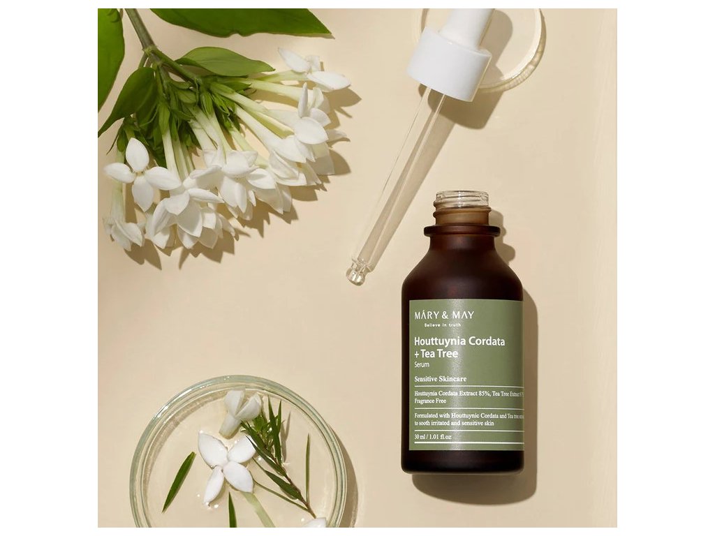 Obsahuje 85 % extraktu z Houttuynia Cordata a 9,7 % extrakt z čajovníka. Hutínia Cordata pomáha detoxikovať pokožku a má protizápalové účinky. Znižuje nadmernú produkciu kožného mazu. Čajovník má hojivé a antibakteriálne vlastnosti, preto sa používa aj na liečbu akné. Zmierňuje začervenanie, čistí pleť a póry, takže problematická pleť je upokojená a regenerovaná. Sérum sa rýchlo vstrebáva a je bez parfumácie.